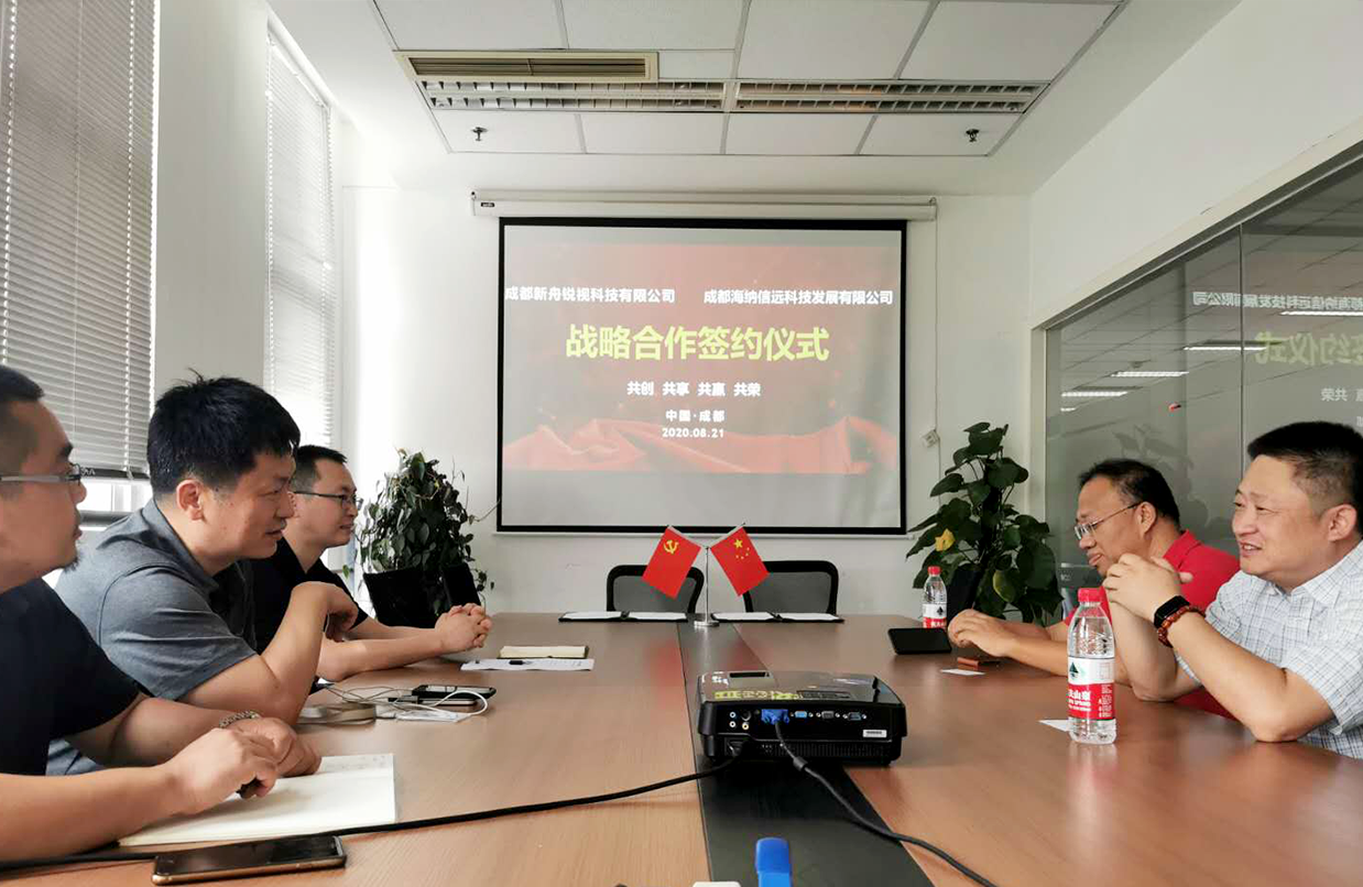 2020年8月21日上午,成都新舟銳視科技有限公司與成都海納信遠(yuǎn)科技發(fā)展有限公司戰(zhàn)略合作協(xié)議,于成都天府軟件園新舟銳視總部簽署。成都新舟銳視科技有限公司董事長(zhǎng)鄒鋼、成都海納信遠(yuǎn)科技發(fā)展有限公司石總、張總出席了簽約儀。新舟銳視董事長(zhǎng)鄒鋼與海納信遠(yuǎn)石總代表雙方簽署了《戰(zhàn)略合作協(xié)議》